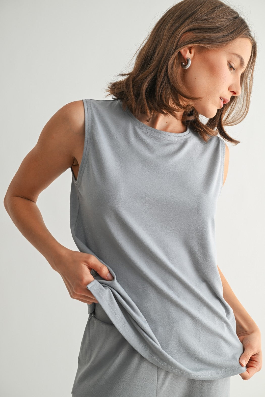 and a true-to-size fit. Fabric is a lightweight knit. Model is 5'10" and is wearing a size Small.
