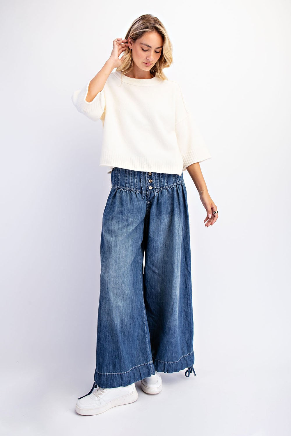 Meet Goldie, the laidback, oh-so-chic crew neck style we can't stop wearing (or thinking about). Boxy fit, with roomy sleeves, and now, available in cotton for warmer days. -Crew neck -Pullover styling -Wide elbow sleeves
