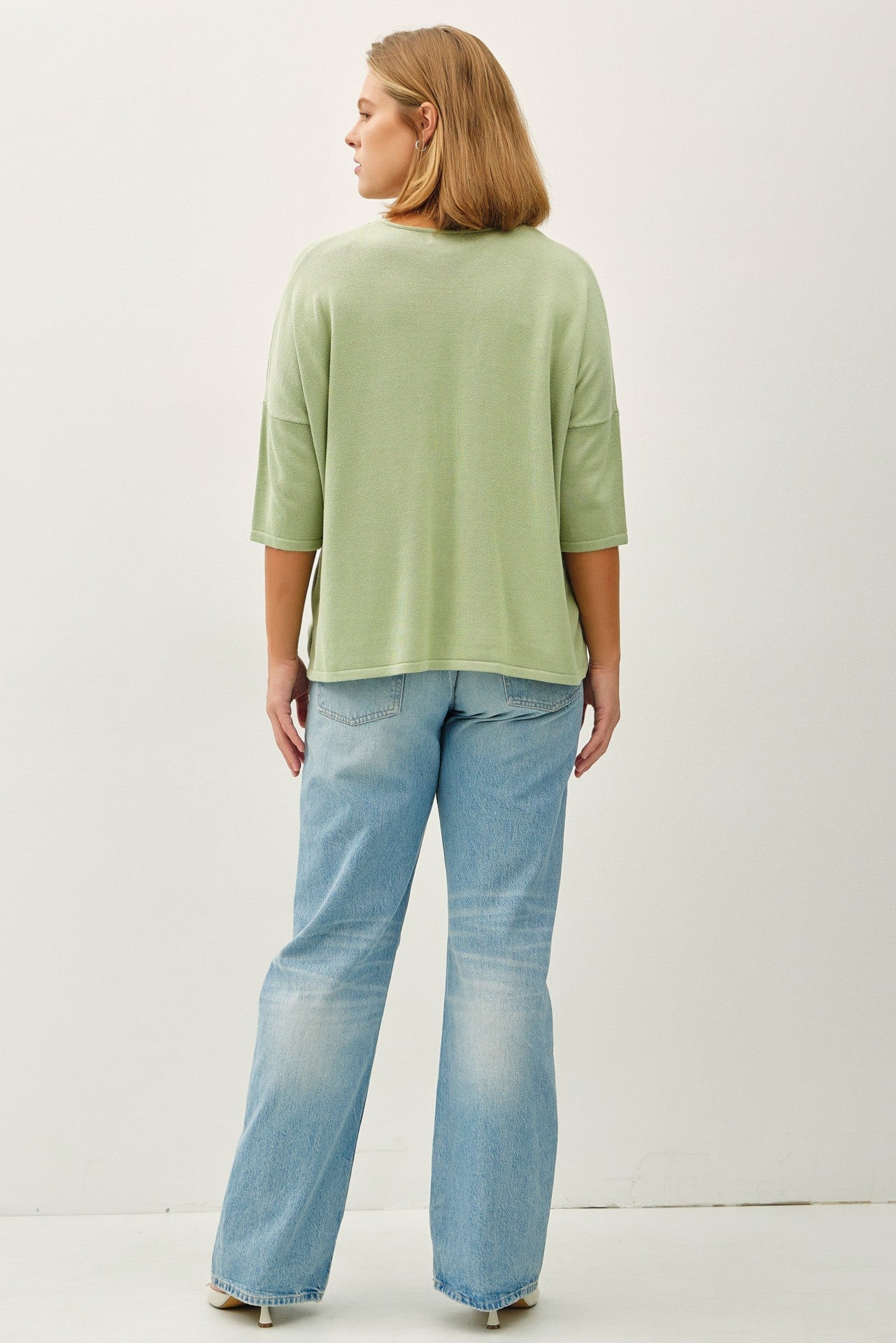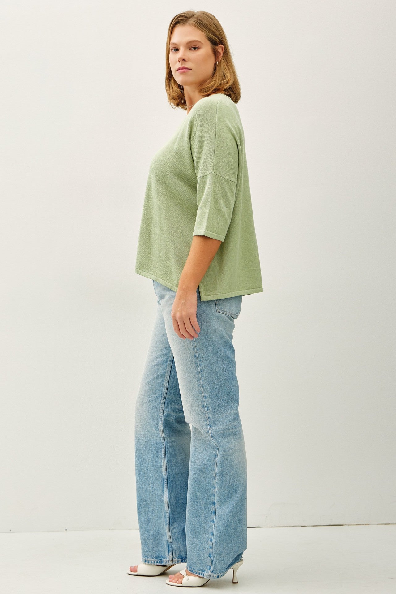 DROP SHOULDER, COTTON SLUB, V-NECK LIGHTWEIGHT KNIT TEE
