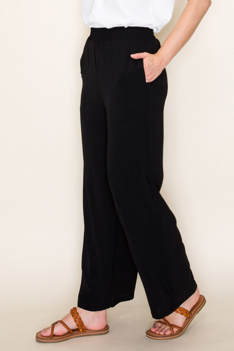 ELASTIC WAIST BAND, SIDE POCKETS, SOLID WIDE LEG PANT