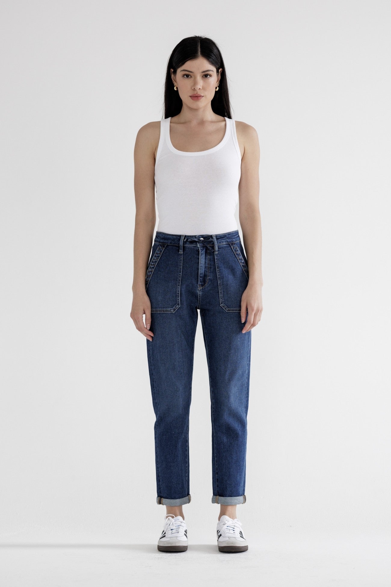 HIGH RISE MOM JOGGER 54% COTTON, 41% VISCOSE, 3.8% POLYESTER,1.2% SPAN FRONT RISE : 11" INSEAM : 26 1/2" (CUFFED) LEG OPENING : 12 1/2"