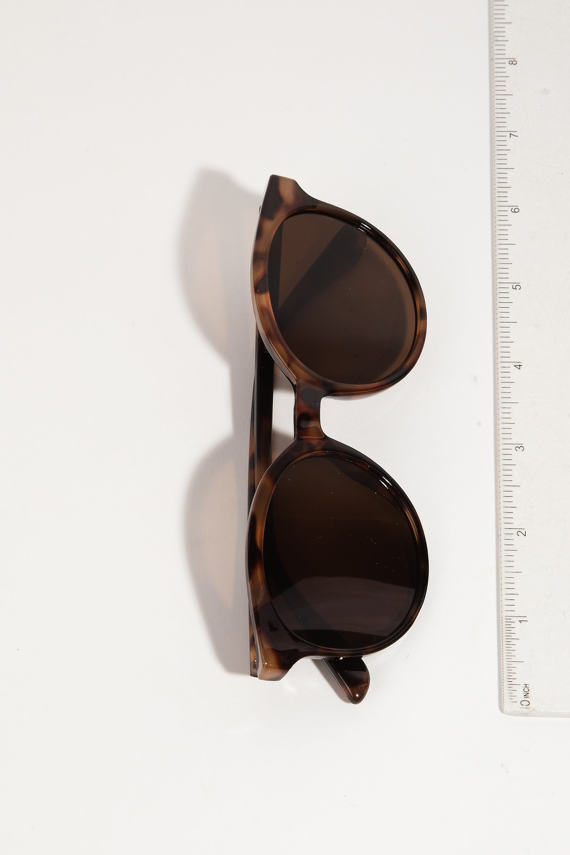 This set of sunglasses showcases a unique plastic round lens sunglasses